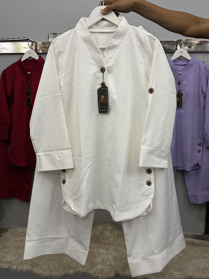 Elevate your festive and casual wardrobe with our Luxe Embossed Co-ord Set, crafted from premium textured fabric featuring a subtle embossed designer pattern. The stylish detailing and elegant finish make it a perfect choice for both traditional and modern looks.